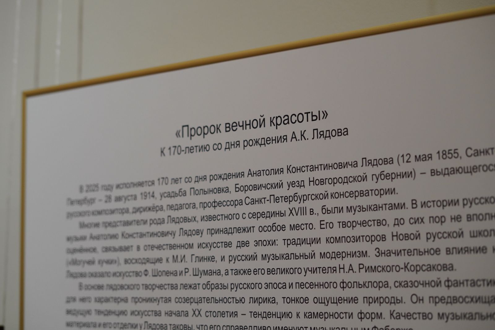Открытие выставки <Пророк вечной красоты>, приуроченная к 170-летию со дня рождения композитора АнатолияЛядова, в Великом Новгороде